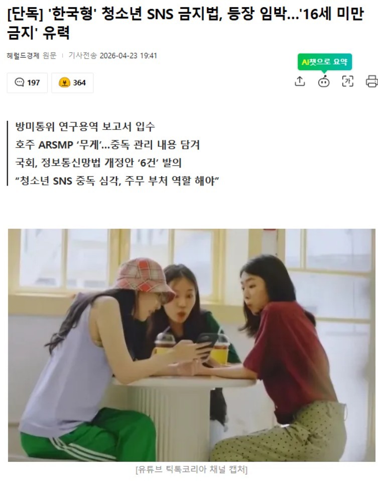 '한국형' 청소년 SNS 금지법, 등장 임박