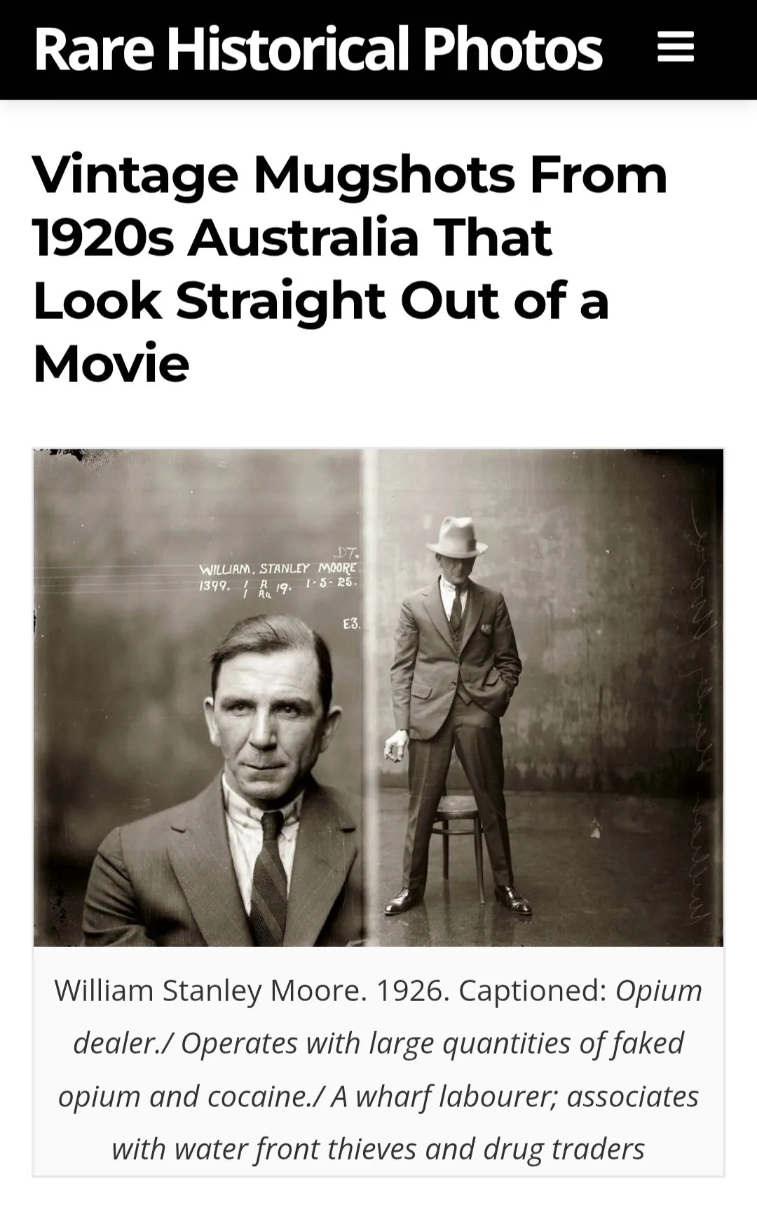 1920년대 호주 경찰이 촬영한 범죄 용의자 머그샷