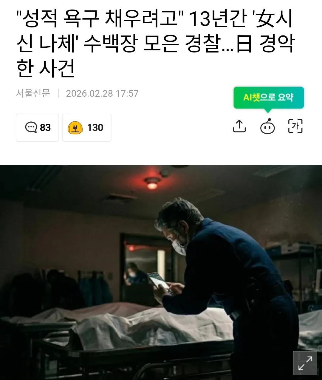 13년간 '女시신 나체' 수백장 모은 경찰