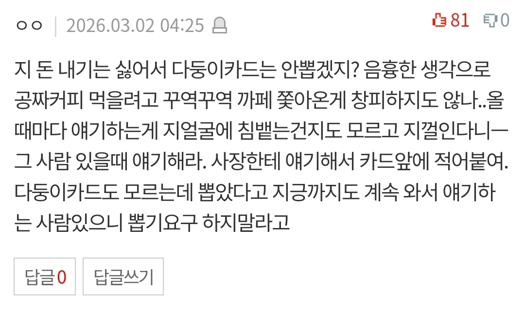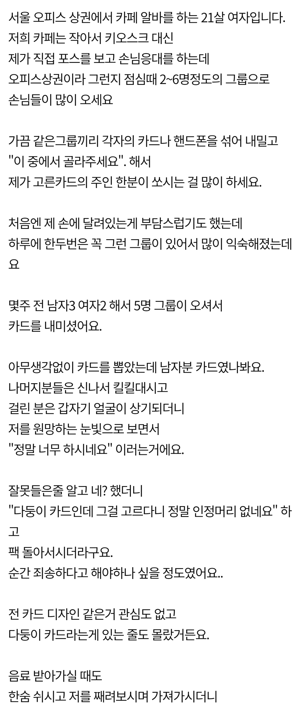 카페에서 카드 뽑아달라고 하지 말아주세요 > 유머게시판