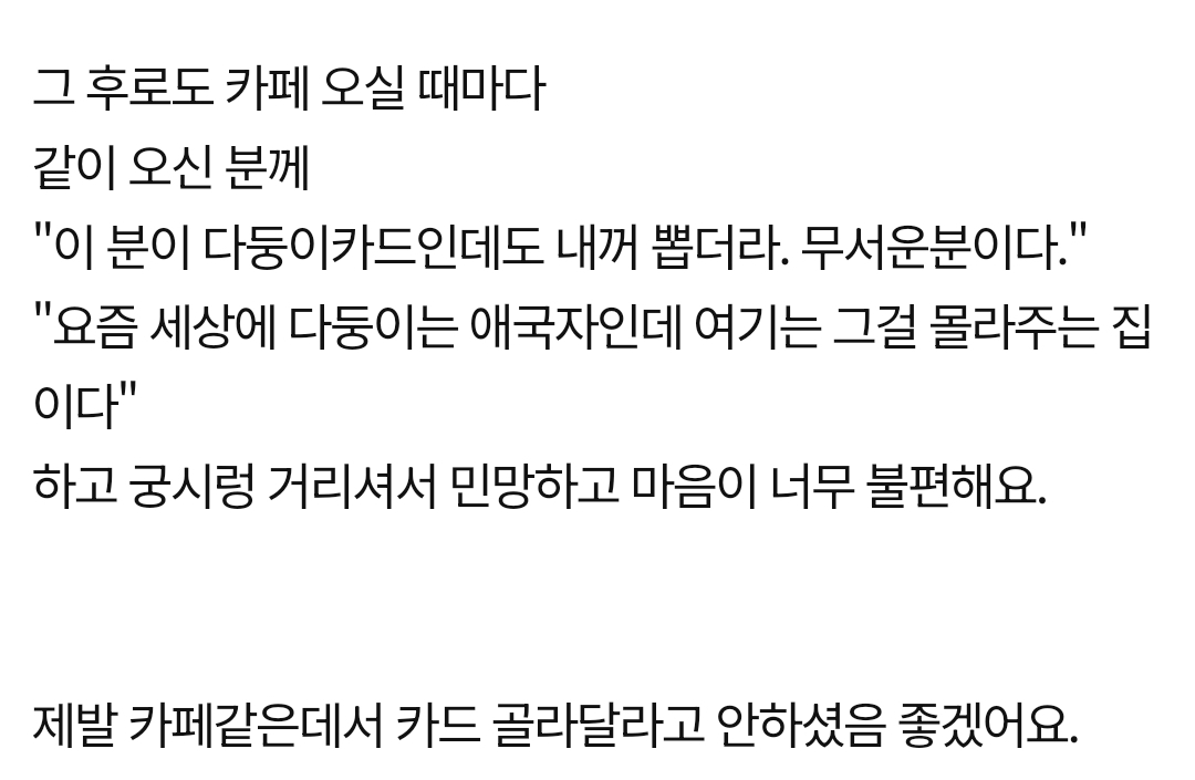 카페에서 카드 뽑아달라고 하지 말아주세요